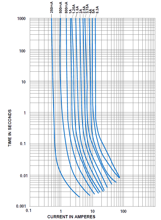 4.外觀及形狀 APPEARANCES AND CONFIGURATION 4-1外觀:不應有破碎、明顯的汙斑 Appearances:There shall no fragmentation and of remarkable blotch. 4-2形狀:帶腳的保險絲 Configuration:Axial Leaded Fuse. 5.物理特性 PHYSICAL CHARACTERISTIC 5-1 拉力測試 Tensile test 沿端子的軸向施加10N的拉力,持續(xù)1分鐘。 Keep pulling the cap of the fuse with 10N at axial direction for 1 min. 6.電氣特性 ELECTRICAL CHARACTERISTICS 熔斷/電流特性: Pre-Arcing Time/Current Characteristic a、Breaking capacity(分斷能力)(Time Lag )