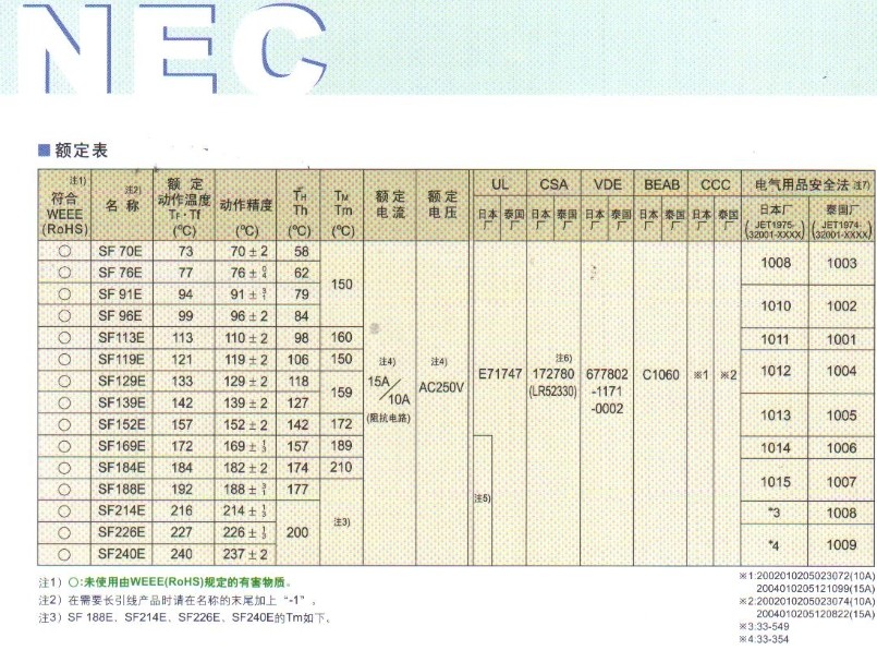 NEC溫度保險(xiǎn)絲