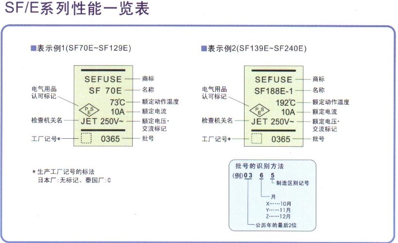 SF-E 系列保險(xiǎn)絲AC250V 10A/AC125V 15A,SF70E,SF76E,SF91E, SF113E, SF119E,SF129E,SF139E,SF152E,SF169E,SF184E,SF214E,SF226E,SF240E,產(chǎn)品認(rèn)證齊全。