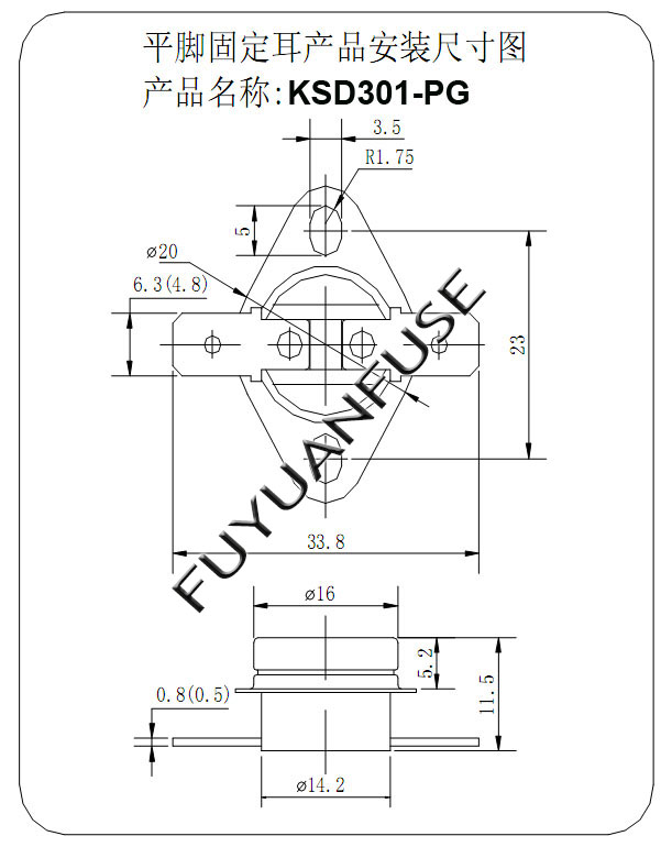 特殊規(guī)格可根據(jù)客戶要求定做The specification can also be manufactured as request. 如超低和超高溫度及特殊復(fù)位產(chǎn)品可根據(jù)客戶要求協(xié)商訂做 溫度檢測方法: 將試樣兩引線分別接在測試設(shè)備的夾具上,通上10mA左右的電流(不超過100mA),用一發(fā)光二極管指示電流的通斷,然后將試樣放入專用測溫設(shè)備內(nèi),(測試設(shè)備內(nèi)溫度應(yīng)均勻,加熱升溫速度可控制)溫度計探頭應(yīng)貼近試樣,控制檢測設(shè)備溫度以0.5~1℃/min的速率升溫,當發(fā)光二極管熄滅時,記下溫度計讀數(shù)即為試樣的動作溫度。 TEST METHOD:Sample is connected to the fixture of the equipment,and placed into the test equipment (Hot current of air in the space of test should be equipped with a stirrer and temperature is controllable).A detect current about 10mA(no more then 100mA)is passed through the sample and a thermometer is placed junction to the sample to monitor the opening temperature .The temperature of the test equipment is raised at the rate of 0.5~1℃ per minute until the sample functioned.